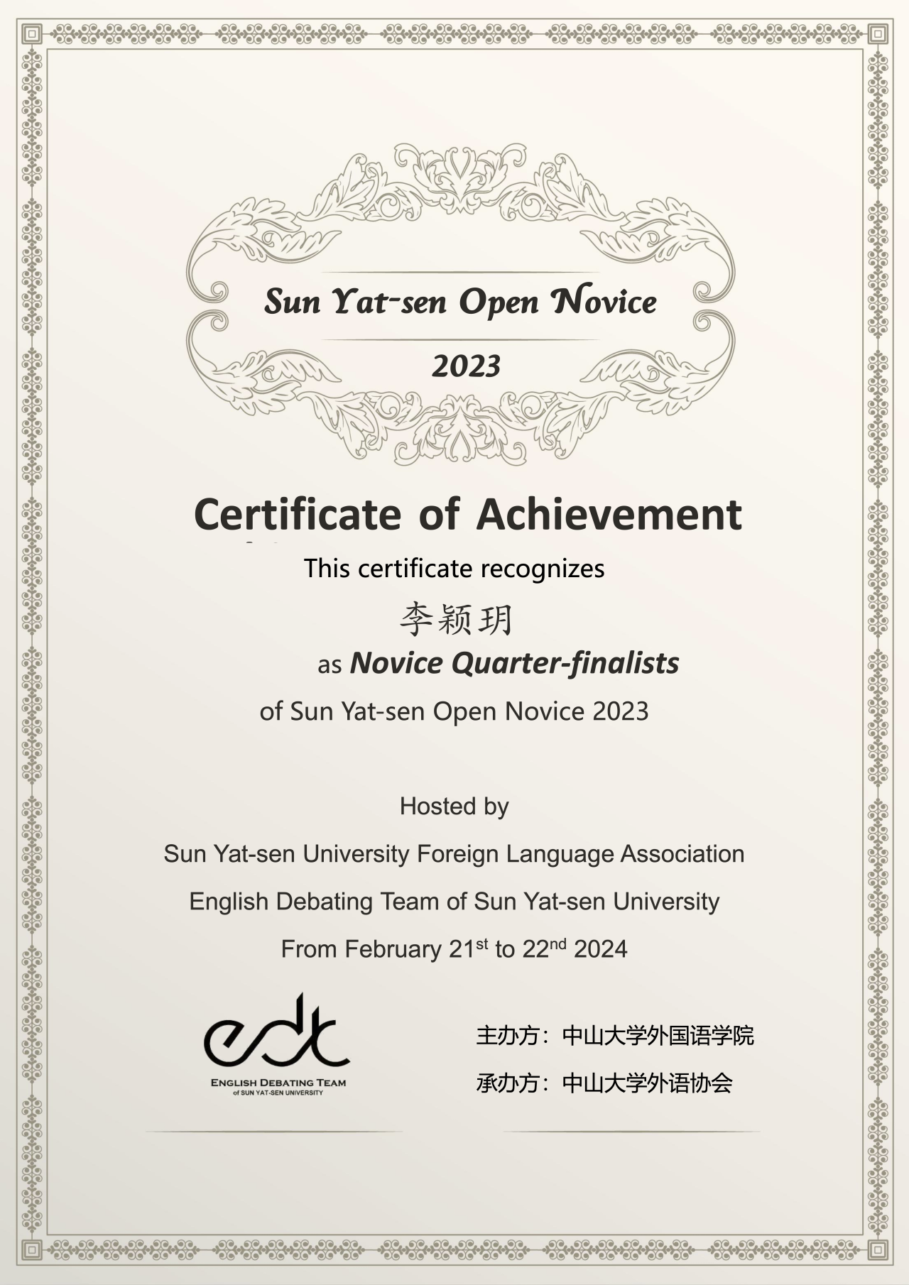 英辩队同学获奖证书