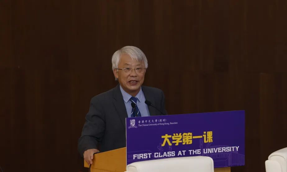 香港中文大学(深圳)校长徐扬生教授为新生介绍了大学各学院、书院的主管人员以及大学教学质量的总体概况及人才培养目标。他以比尔盖茨的名言起头“Surround yourself with people who challenge you, teach you, and push you to be your best self”,鼓励新生勇于挑战,在香港中文大学(深圳)浓厚的学术氛围里得到蜕变。他详细阐释了港中大(深圳)的教育理念:学贯中西,汇通古今,融合文理,让新生深刻了解学校的国际化特色。徐校长更是希望同学们沉浸式的体验大学生活,积极参与每一堂课的发言讨论,积极投入高桌晚宴等各项大学、书院活动。