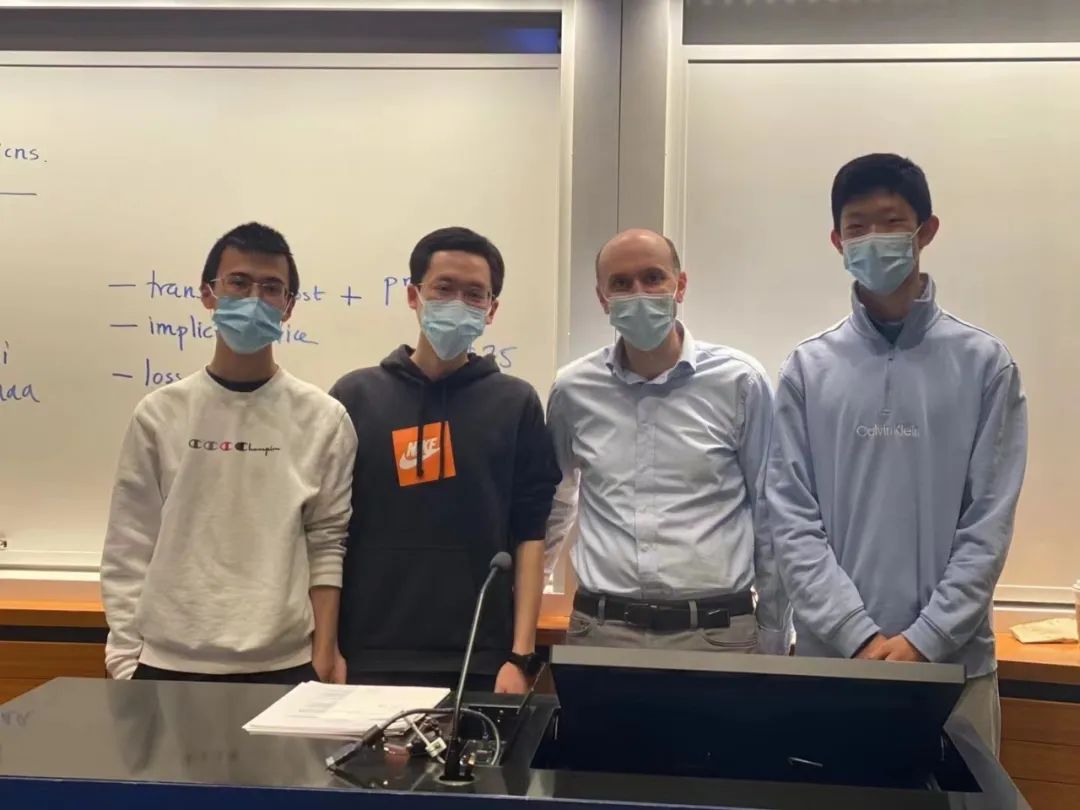 赵千帆(左二)与教授行为金融学的Nicholas Barberis教授(右二)合影